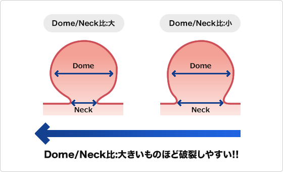 動脈瘤の高さ(深さ・奥行き)を動脈瘤頸部(ネック=母動脈)の長さで割った数値の事。